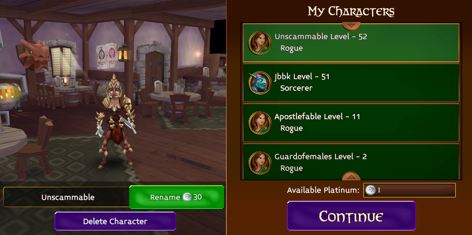 You can also rename/delete your Characters here, it's a great tool to use if you want to scam someone and get away with it, or just to be cool.